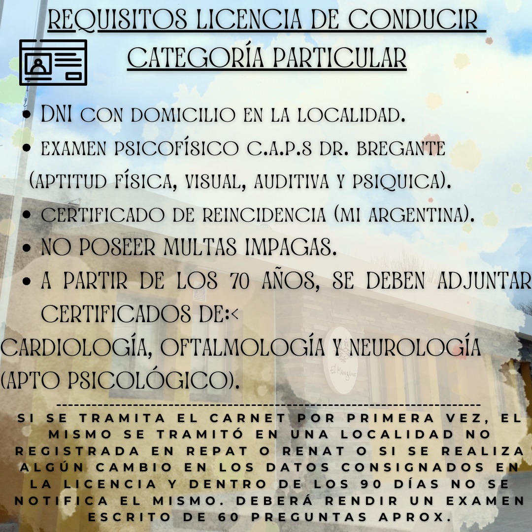 21 años para las licencias profesionales (Categoría C, D y E), requiriéndose además poseer una licencia clase B por lo menos de un año de antigüedad. 18 años para clase A y B. No podrán obtener licencia profesional por primera vez las personas de 65 años o más, ni de ninguna clase aquellas de 70 años o más. En caso de renovación de licencia de personas que superen dichas edades, cada situación deberá resolverse en particular, previa realización de los exámenes correspondientes. Respecto de los vehículos destinados al servicio de transporte de pasajeros, emergencias o seguridad, no podrán otorgarse ni renovarse licencias a personas que hayan cumplido 70 años de edad. Edades mínimas para conducir